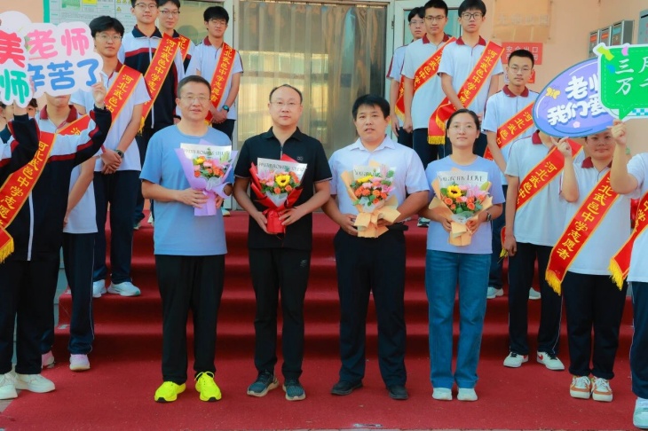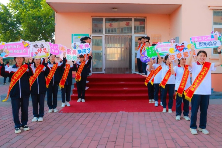 校门口、教学楼前早已是热情的海洋高三年级的主任们身先士卒带领着精神抖擞的学生代表们整齐列队手持鲜花与精心准备的礼物用最饱满的热情迎接每一位步入校园的老师他们脸上洋溢着真诚的笑容目光中充满敬仰一声声“老师,节日快乐!”响彻云霄