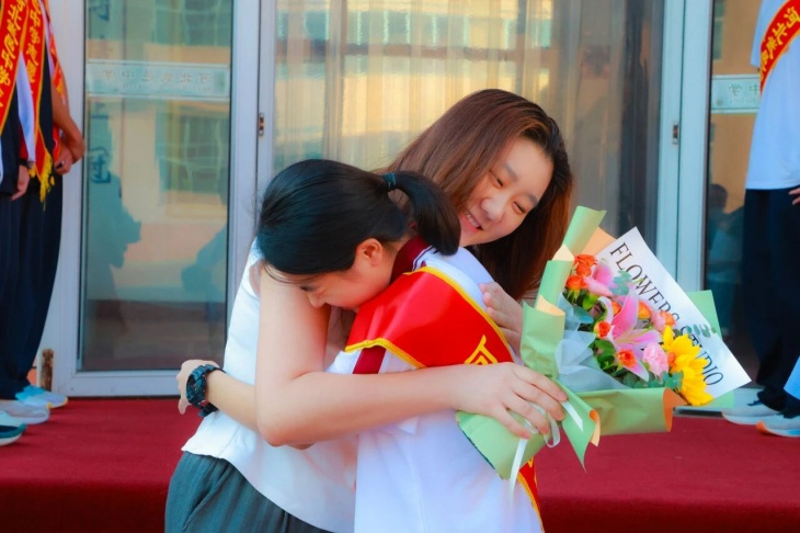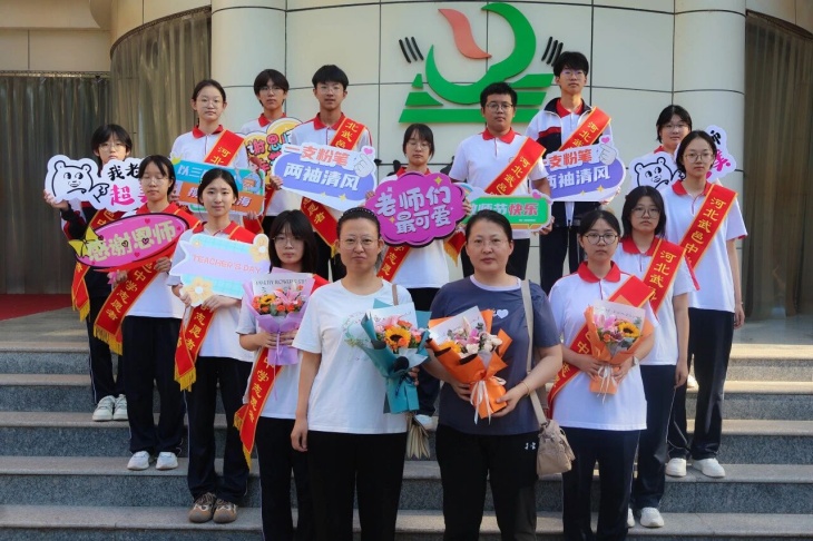 当老师们带着惊喜与感动走进教学楼迎接他们的是更加温馨感人的瞬间学生们手捧着一束束娇艳欲滴的鲜花承载着最纯真的敬意纷纷送到老师手中学生们鼓起勇气,张开双臂紧紧拥抱着自己敬爱的老师师恩如春风化雨,润物无声而此刻学生们用最质朴也最炽热的方式将这份恩情深深镌刻在彼此的心间