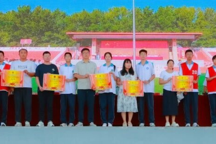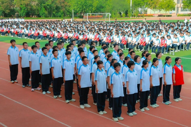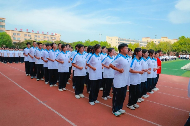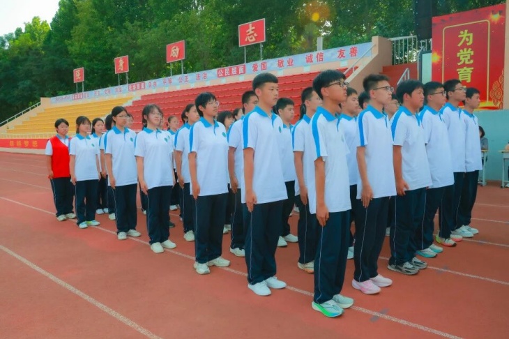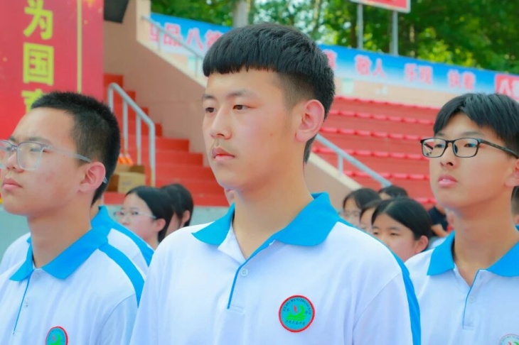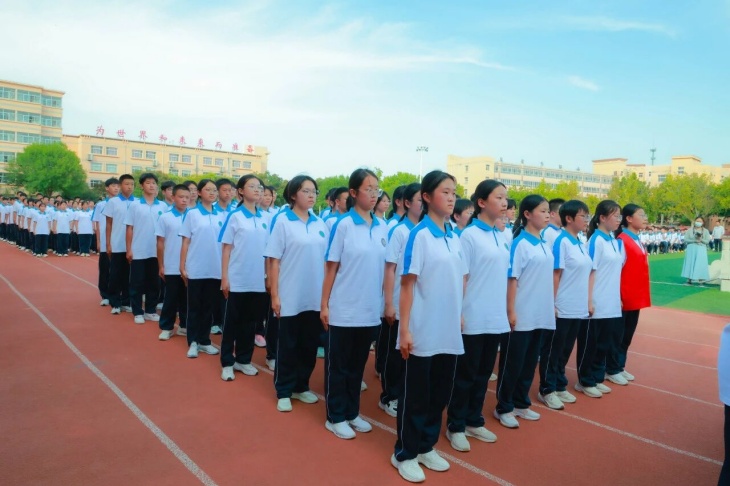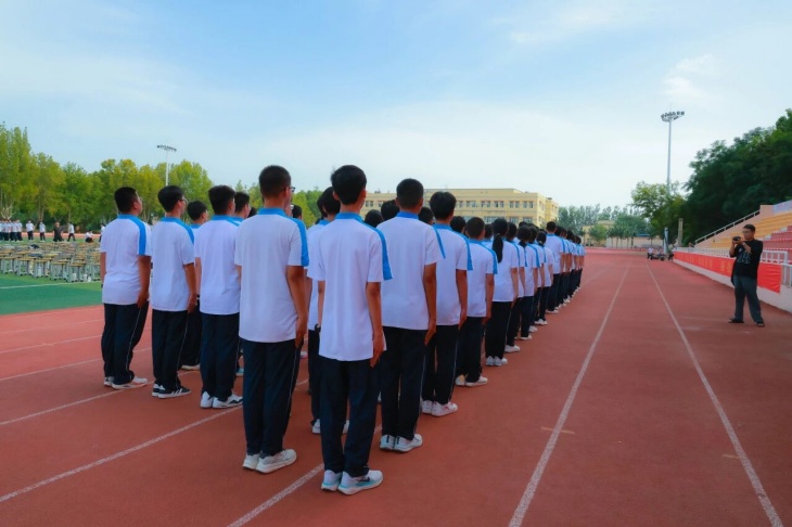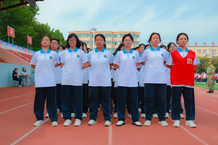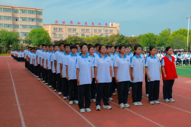 淬火成钢展英姿,青春砺剑启新程。在为期七天的军事训练中,高一新生以汗水浇灌成长,用意志对抗骄阳,以昂扬的斗志和整齐的步伐,成功迈出了高中生涯坚实的第一步。为检验武中学子的军训成果,展现新生蓬勃的军训风采,并进一步激发同学们爱国爱党爱军的炽热情怀,9月7日下午,武邑中学2025级新生军训成果考核大会在操场举行。武邑县人民武装部部长韩重建,武邑中学党委副书记、副校长赵杰翔,武邑中学副校长赵晓艳、金耀辉、高智勇,安全处主任魏红胜,高一年级主任孙涛、贾新亮,以及全体高一师生参加了此次大会。