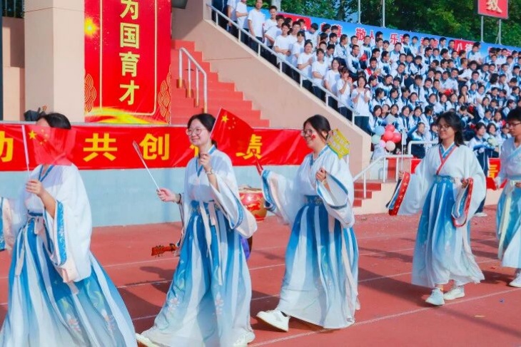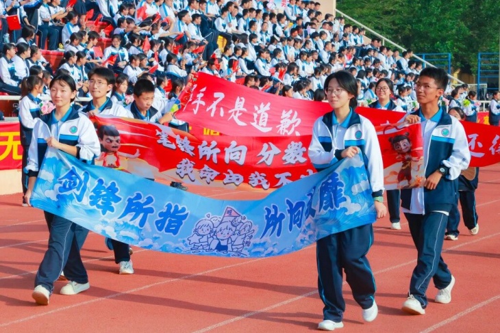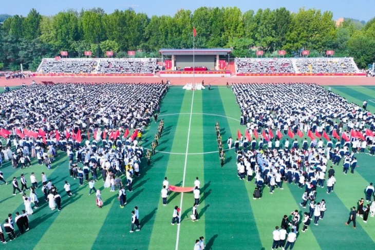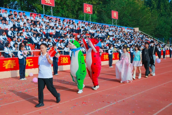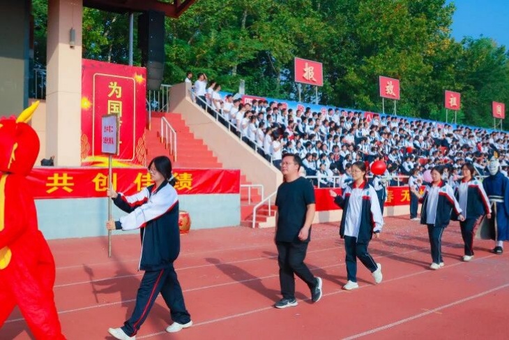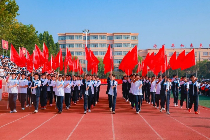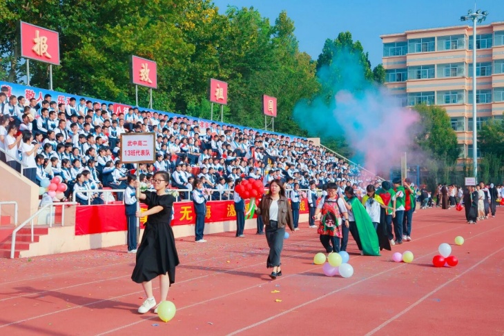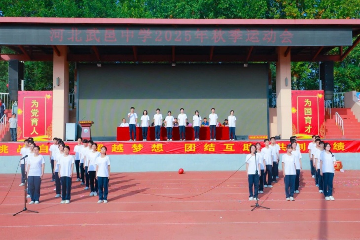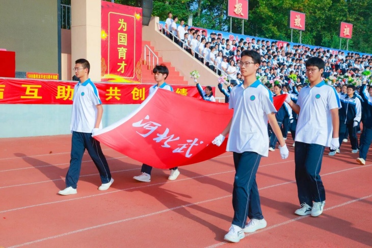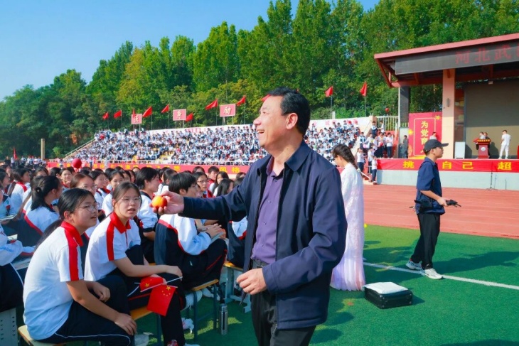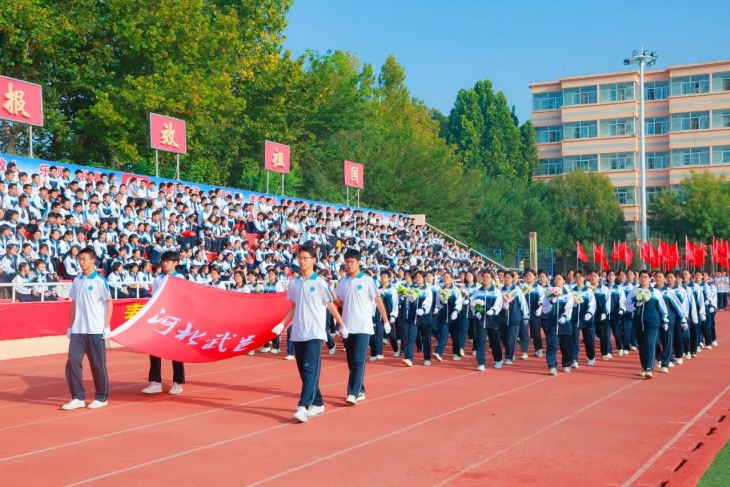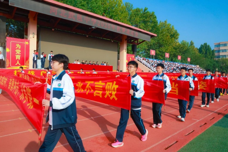 金秋九月,丹桂飘香。河北武邑中学2025年秋季运动会在万众期待中拉开帷幕。武邑中学党委书记沈风雷,党委副书记、副校长赵杰翔,副校长赵晓艳、金耀辉、高智勇,安全处主任魏红胜,高二年级主任崔井旺、周喜峰,高一年级主任孙涛、贾新亮、田旺等领导出席了开幕式,开幕式由高一年级主任孙涛主持。青春的号角在操场吹响,拼搏的火焰在心中点燃。全校师生齐聚一堂,共同迎接这场充满激情与梦想的体育盛会,更是武中学子以青春之名,向祖国母亲献上的最真挚贺礼。这里,是速度与力量的角逐;这里,是青春与梦想的舞台。