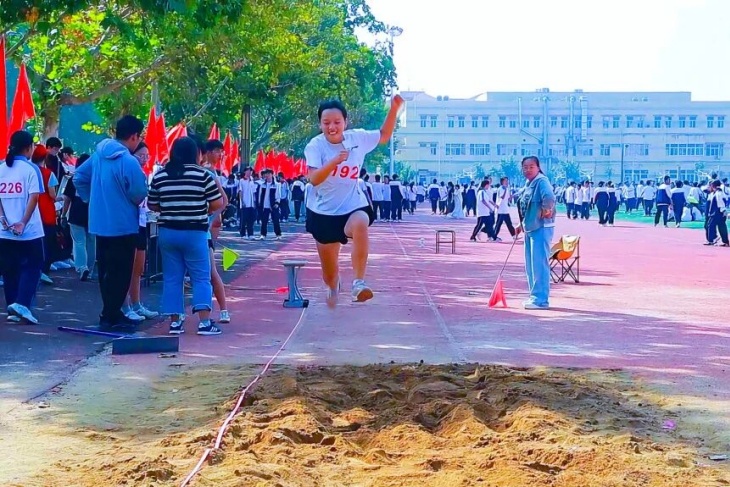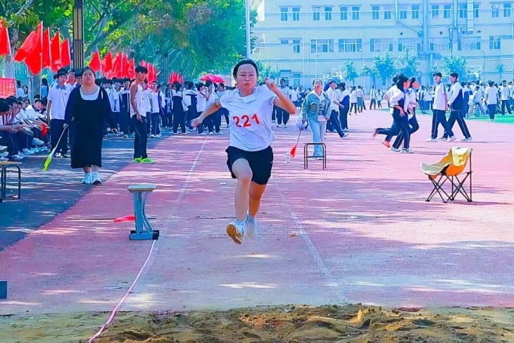 赛场沸腾,激情点燃!武中学子,全力以赴!赛道上,他们风驰电掣,挑战速度极限;沙坑前,他们奋力一跃,留下拼搏的足迹;横杆上,他们轻盈腾空,刷新自己的高度。每一次冲刺,每一次跳跃,都凝聚着力量与汗水,彰显着顽强与不屈。这就是竞技的魅力,这就是青春的活力!