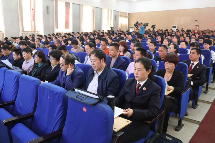 县政法委、县法院、县公安局、县妇联、团县委、县关工委、县教育局、县文广新局、县广播电视台、县司法局、县民政局等单位主要负责人,部分市、县人大代表、县各中小学校校长、农村电影放映员代表及师生代表共计五百多人,大会由县检察院检察长李彦青主持。
