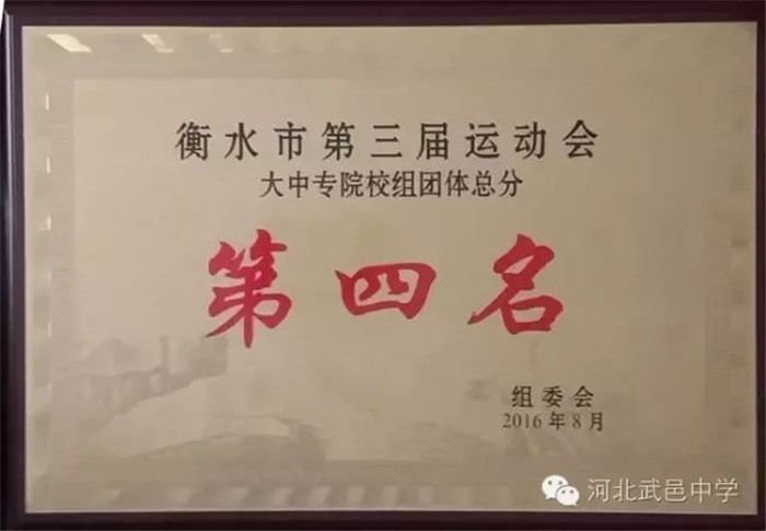 衡水市第三届运动会团体第四名