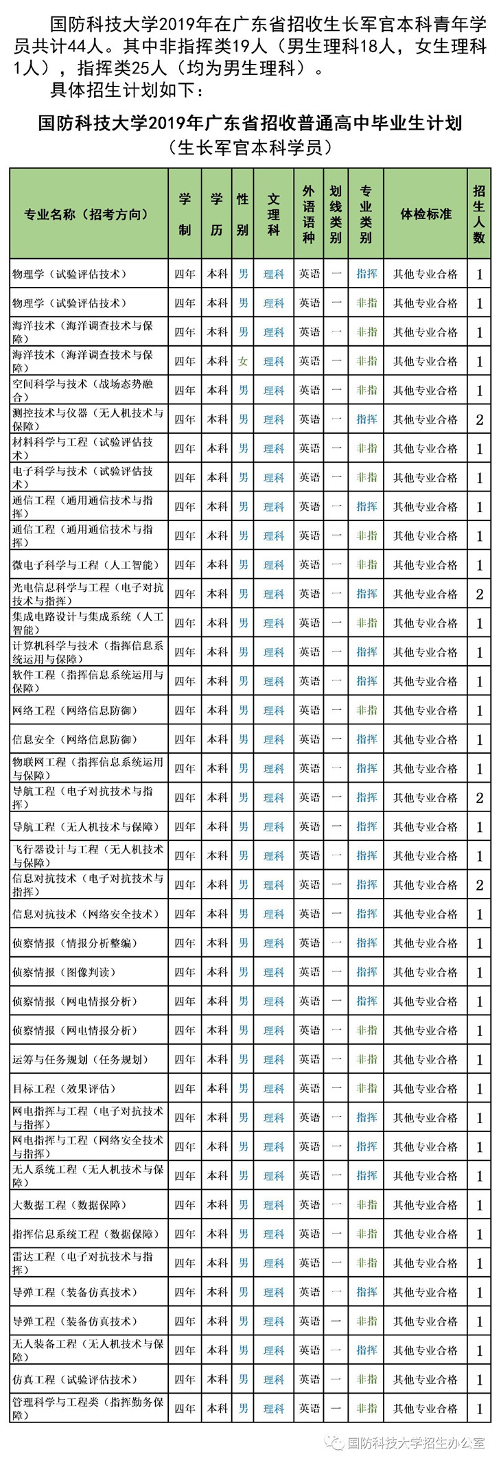 经教育部和军委机关批准,国防科技大学2019年招收普通高中毕业生计划(生长军官本科学员)正式发布。敬请广大考生及家长关注。