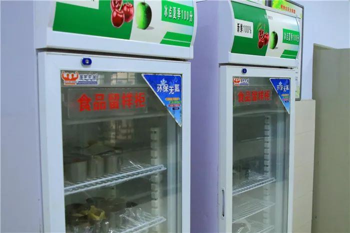 而在武邑中学的食堂,后厨干净卫生,工作人员穿戴整洁,食材也是既干净又新鲜。同时,我们还配备了食品留样柜,最大程度的保证同学们能吃上放心的饭菜
