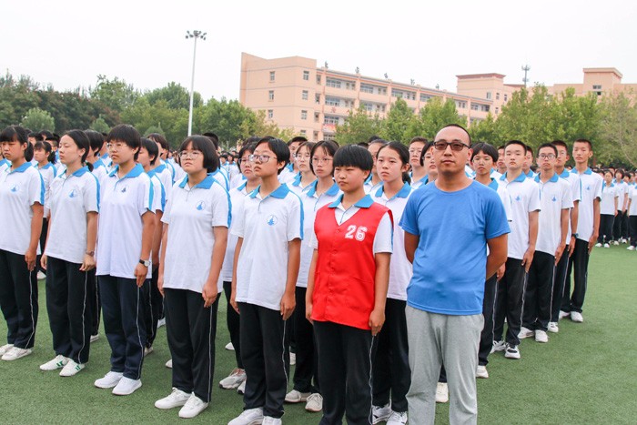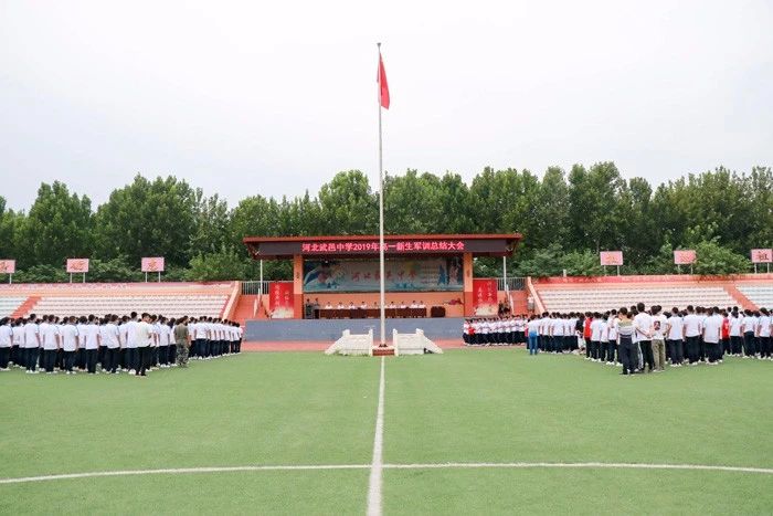 养兵千日,用兵一时,今天上午八点,我校高一全体同学参加了2019年武邑中学高一新生军训总结大会,武装部政工科科长袁张宪,我校副校长高智勇,政教处主任张双柱、副主任魏红胜,高一主任贾新亮、陈雷、袁占军、李长峰、郝立成等领导参与了本次总结大会,本次大会由高一年级主任杜永生主持。