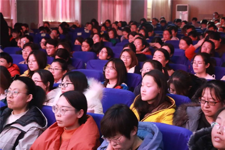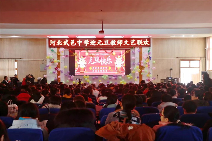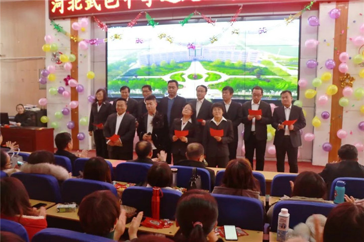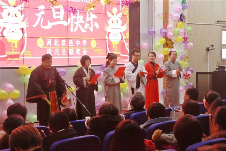 活动伊始,刘玉香、高智勇两位副校长和全体教学主任共同演唱了武邑中学校歌《托起明天的太阳》。随后,刘玉香副校长致开幕词,感谢教师们在2019年的辛勤努力,充分肯定了目前取得的成绩,并鼓励大家团结一致,创造武中辉煌的明天。