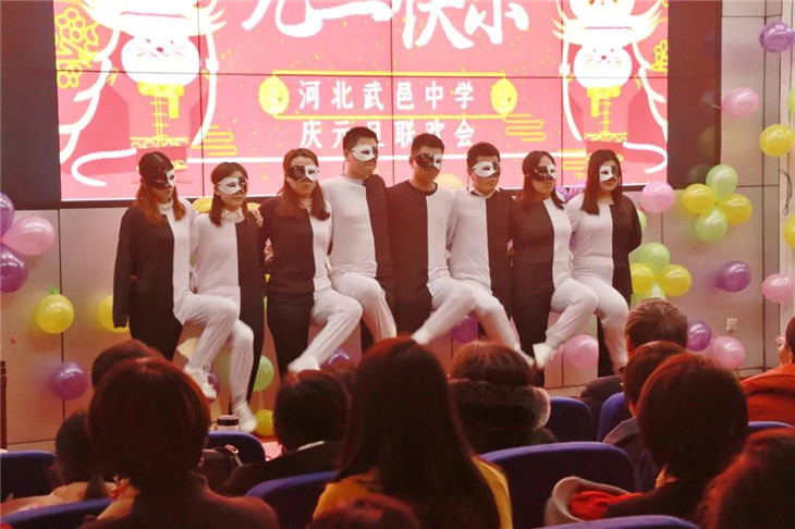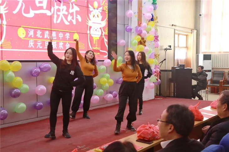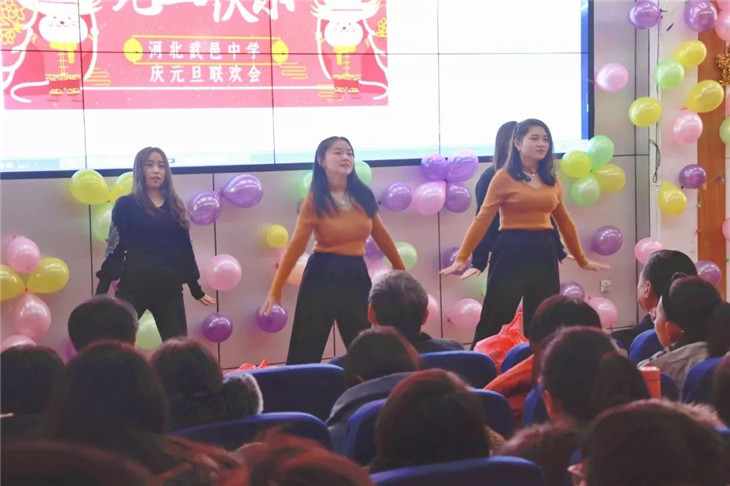 刘校长致辞过后,联欢会正式开始,舞蹈、歌曲、器乐演奏、脱口秀、三句半等节目轮番上演,其中不乏老师们自己创作的节目,充分展现出了武中教师多才多艺的一面。