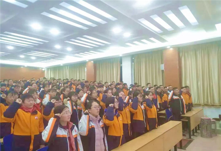 报告会接近尾声时,袁主任带领同学们庄严宣誓:“无所畏惧,成竹在胸;时光荏苒,分秒必争;奋斗今日,无憾此生;全力以赴,我必成功!”同学们宣誓时的慷慨激昂让我们有理由相信,这些可爱的孩子们必将为了自己的梦想,奋斗至最后一天!