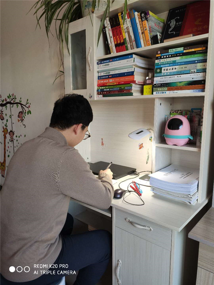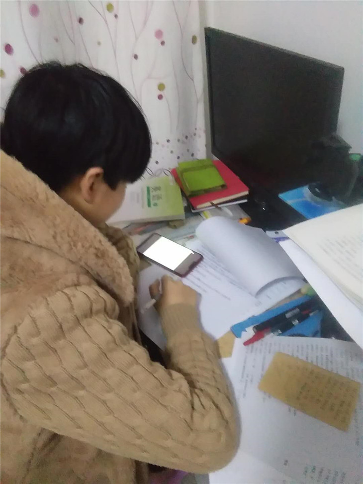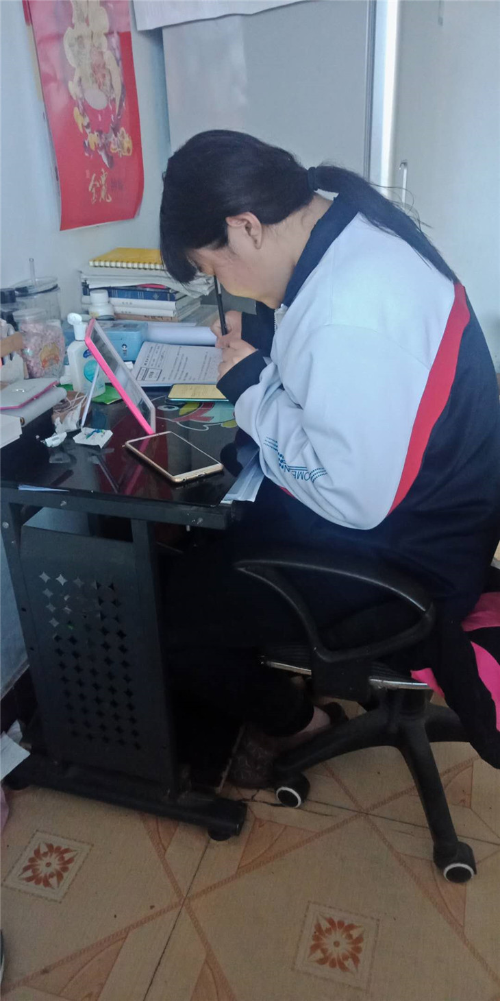 同学们每天通过老师们录制的网课和作业讲解视频进行自主学习,按照学校制定的课程表按时起床和学习,养成良好的生活习惯,在家里营造出和学校一样的学习氛围。
