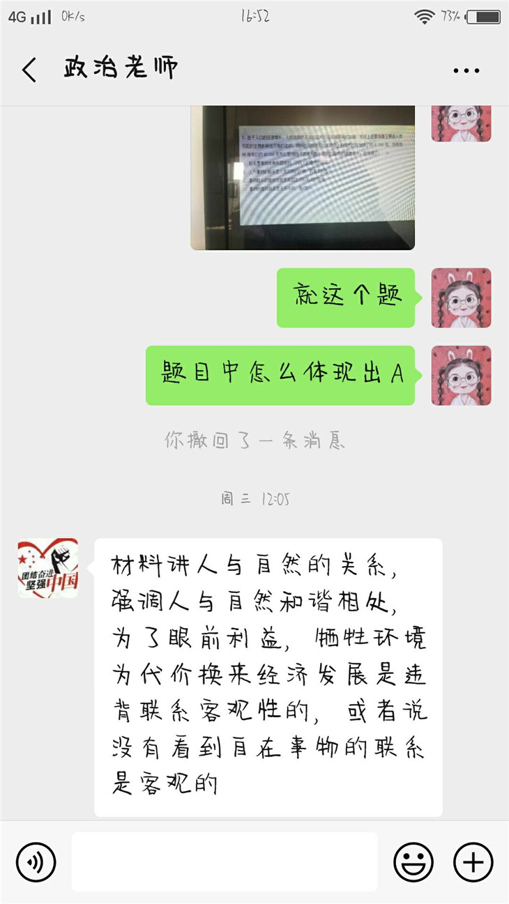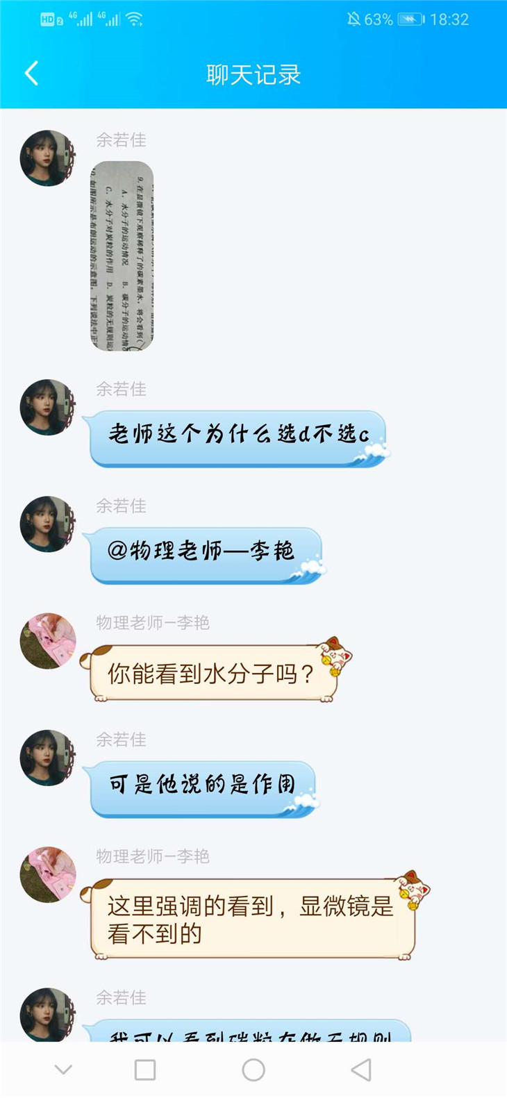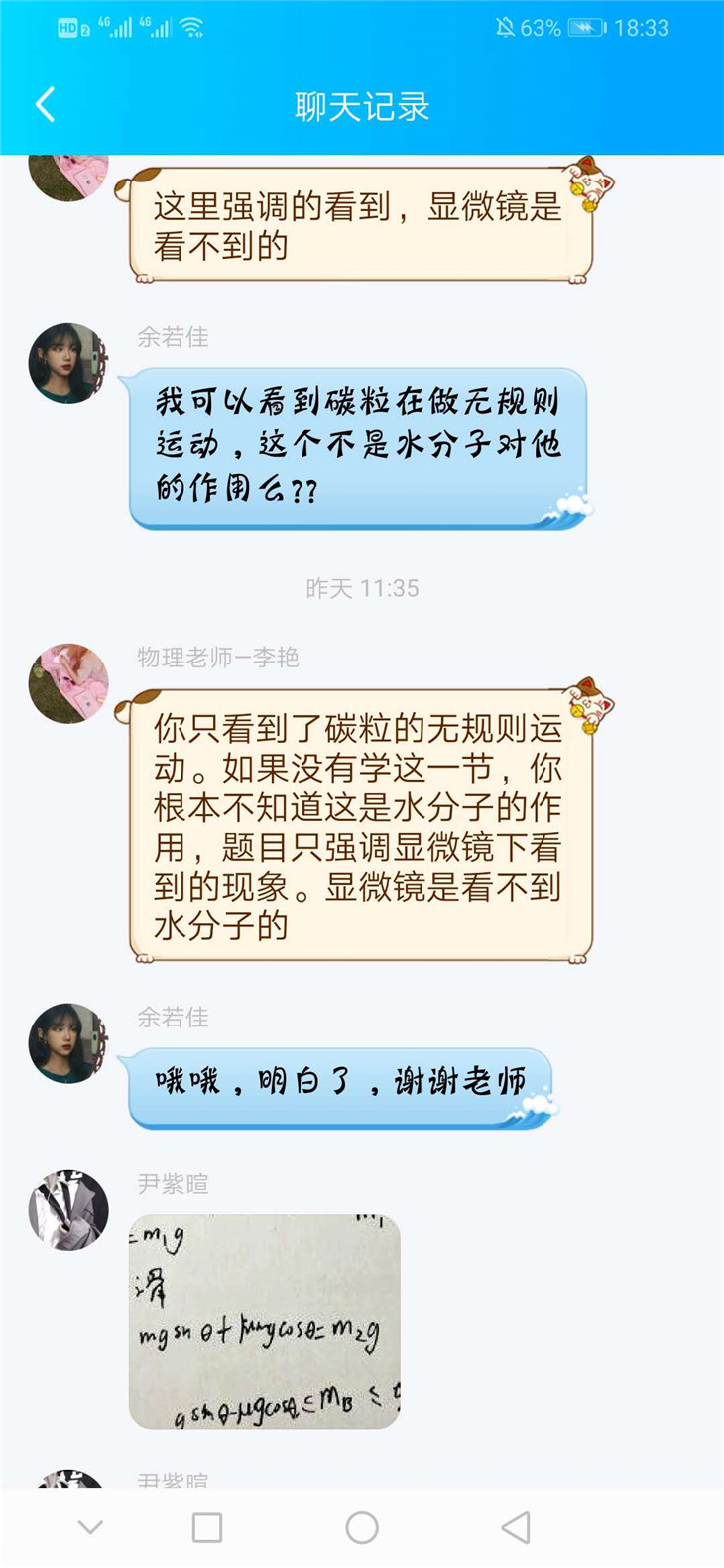 勤奋好学的武中学子在面对学习中的困难时从不会选择放弃,他们会以微信或电话的方式向老师和同学寻求帮助。