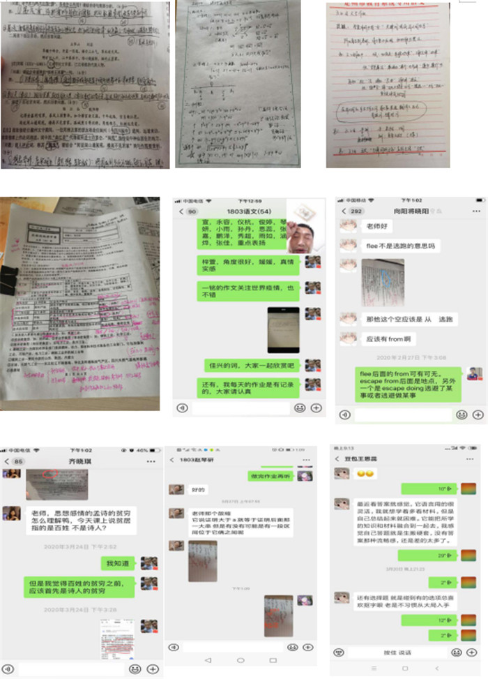 有的老师因疫情无法及时返回,手头也没有教辅资料。第一时间联系同事,联系快递,把教学资料通通搬回家。虽身在老家,但心系每一位学生,认真备课,分析学情,随时在线,随时解疑。