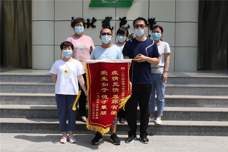 在居家教学期间,我校教师不辞辛劳,不舍昼夜,用无私的付出和敬业的精神保证线上教学质量,回到学校之后,老师们防疫教学两不误,为同学们的学习和生活保驾护航。为此,1904班的全体家长特意制作了锦旗来表达对老师和学校最诚挚的感谢和祝福。