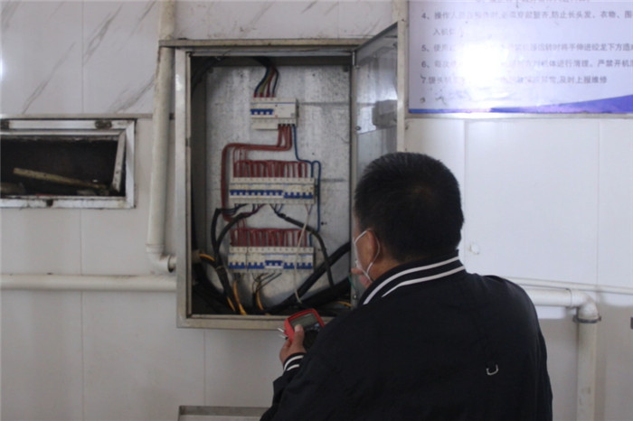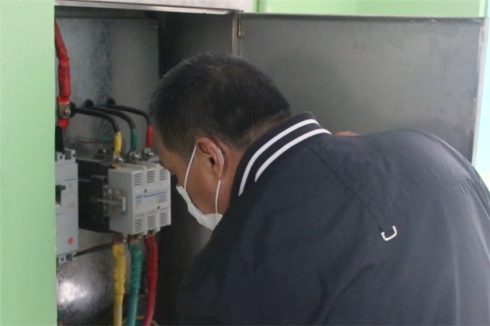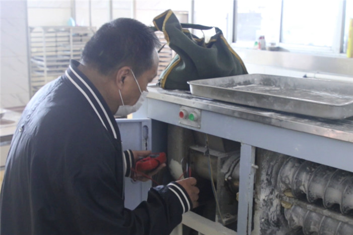 刘长东正在检修食堂的各种设备