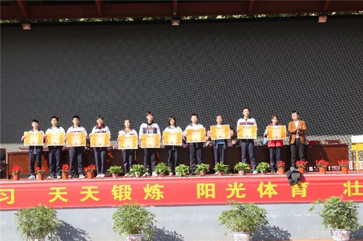 闭幕式由高一年级主任刘嫦妍主持,沈风雷副校长出席闭幕式,高志勇副校长出席闭幕式并致闭幕词。高一年级主任吴少杰宣读了本次运动会上的获奖名单。参加比赛的所有运动员都在本次运动会上彰显出了顽强拼搏,积极进取的精神,为我校全体同学树立了榜样。