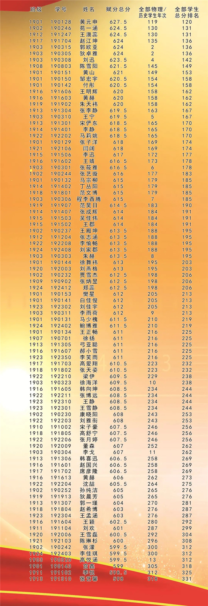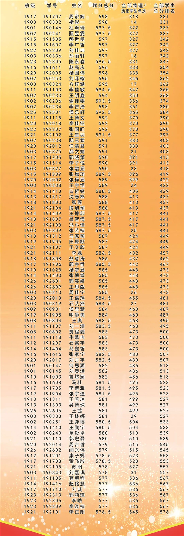 看看是谁榜上有名!高一、高二年级月考光荣榜!