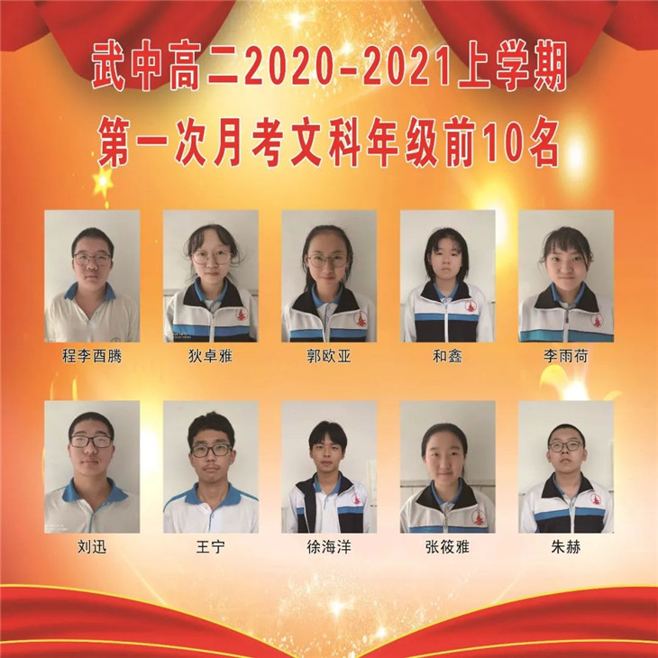 高二年级月考光荣榜