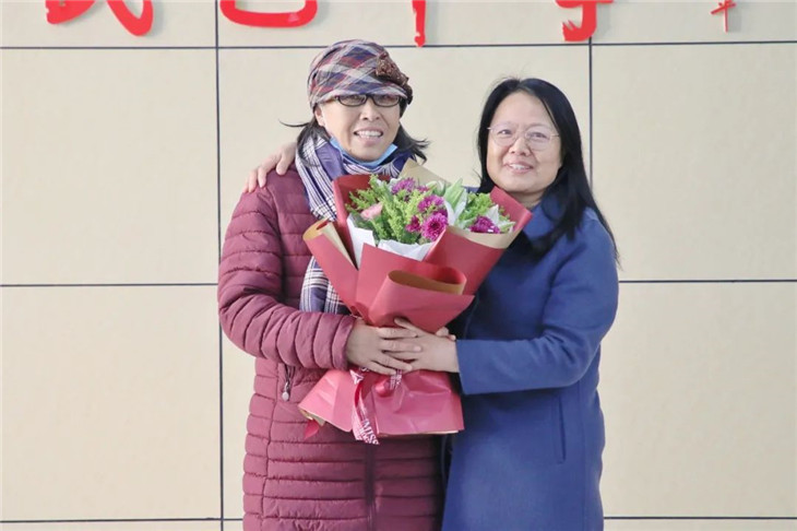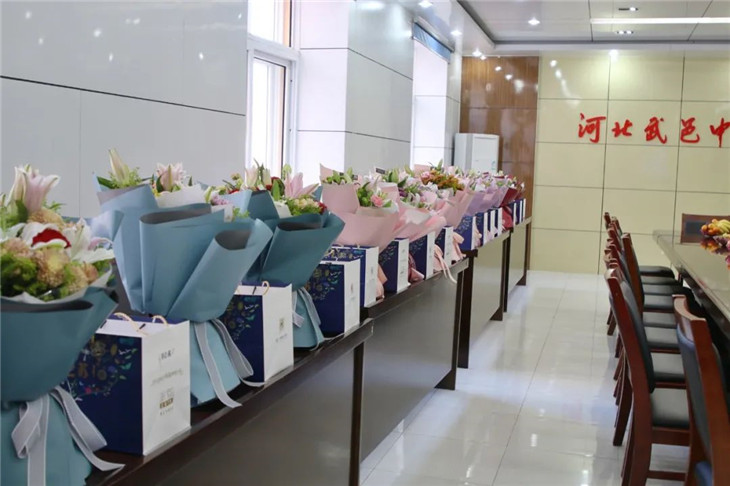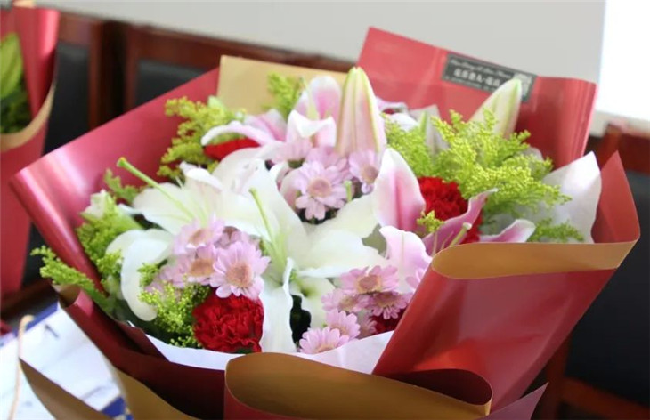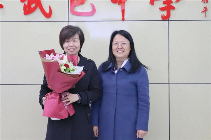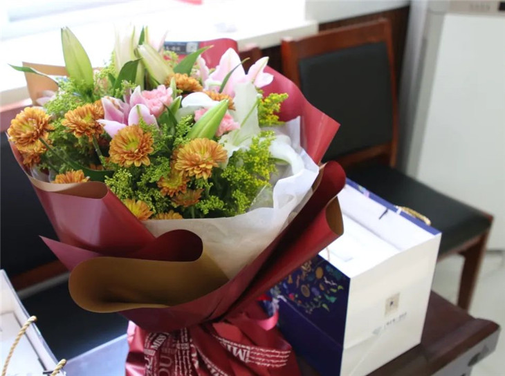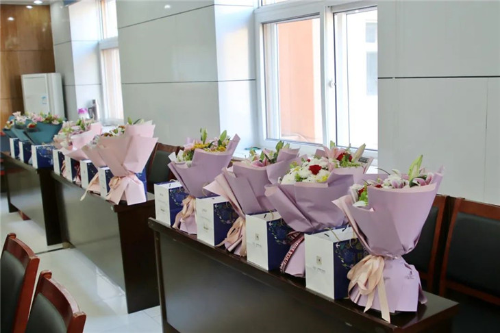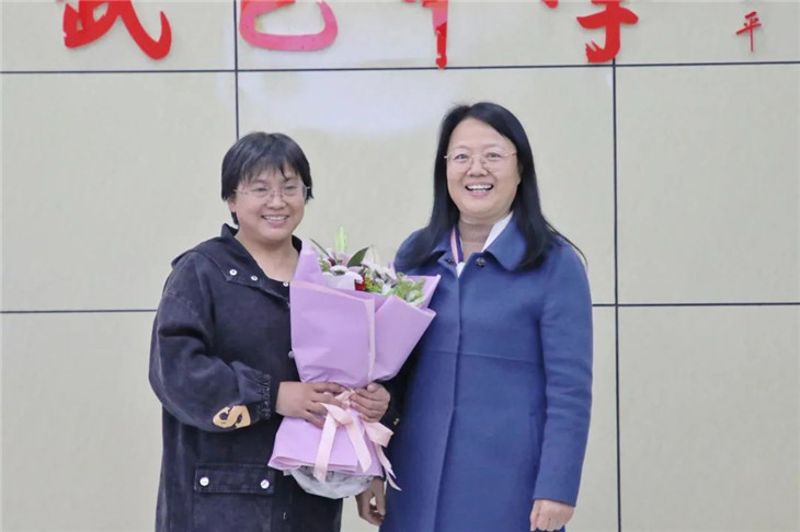 座谈会结束后,刘玉香副校长向我校资深教职工白志宏校长献花,两位校长又分别向在座的各位教师献花,以感谢大家为学校做出的贡献,并向各位教师致以诚挚的节日问候与美好的祝福。