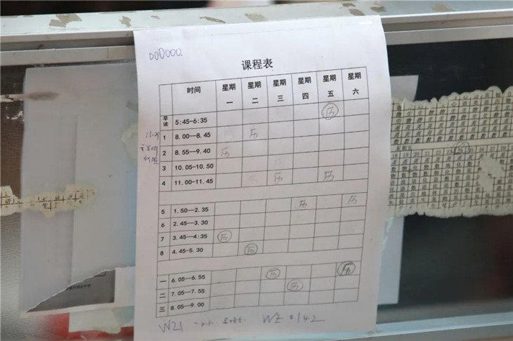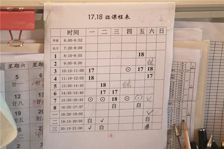 办公桌上最醒目的东西,是每张桌子上都有的待批改的试卷。此外,每位老师的桌上都贴着本班的课表,用于提醒自己按时上课。看到堆积如山的试卷和密密麻麻的课表,再加上平时的教研和备课等工作,可以想像老师们有多么忙碌。