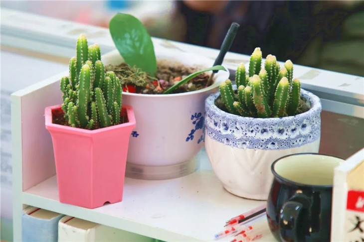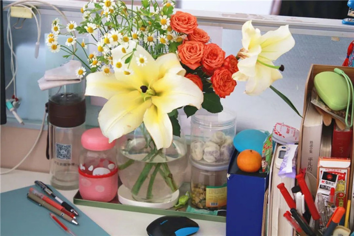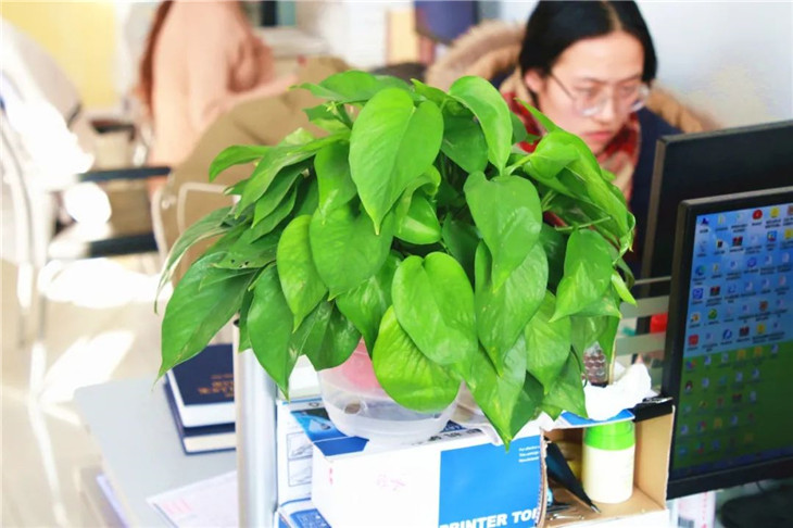 单调的教研室里肯定少不了一些花草的点缀。许多老师都在教研室放置了绿植,在净化空气的同时,还能帮助老师们放松心情、解除疲劳,营造温馨有爱的办公环境。
