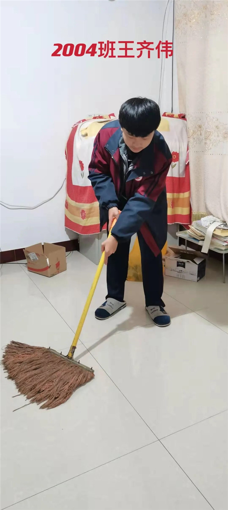 扫地拖地是基本的家务事,对于在学校也经常参加劳动的武中学子来说自然是不在话下,他们回到家中之后,纷纷接过父母手中的扫把和拖把,将家里打扫的一尘不染,干净整洁。
