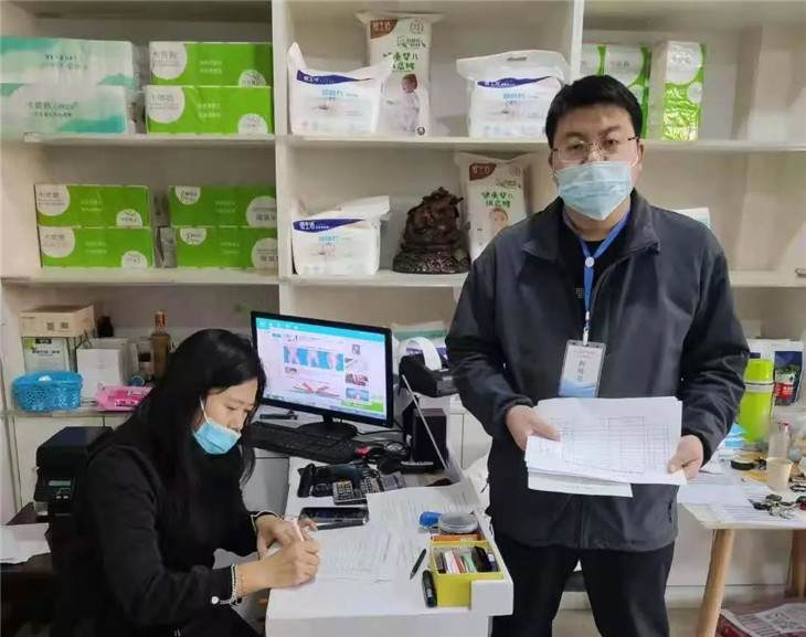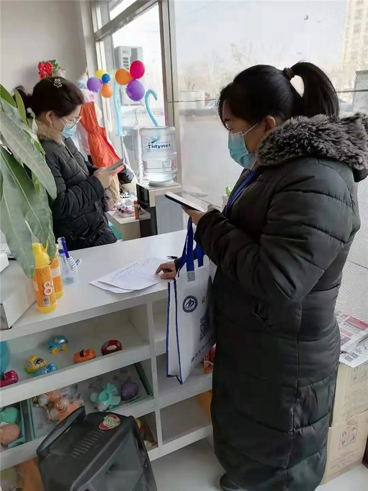 为保证包联街道内各家店铺的有序经营,我校派出的网格员进入店内教授店主如何使用健康码、行程码等工具记录进店人员信息,协助店主建立往来人员台账,在基层建立起疫情防控的第一道防线。