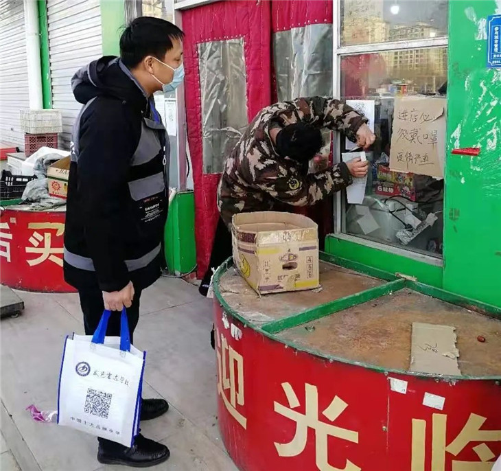 网格员们进入包联街道,对沿街门店进行深入走访调查,张贴疫情防控的有关通知,做好疫情防控知识的宣传,建设群防群控的基层防疫体系。