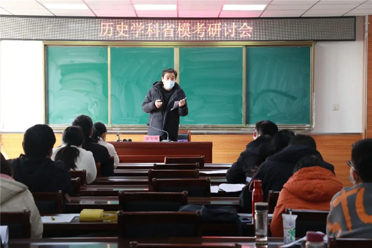 为系统分析上学期期末举行的八省联考中同学们的成绩情况,并以此为基础总结上一阶段教学成果,同时制定下一阶段教学计划,我校教务处组织高三年级于3月3日召开各学科省考研讨会,副校长刘玉香、高智勇出席本次研讨会。