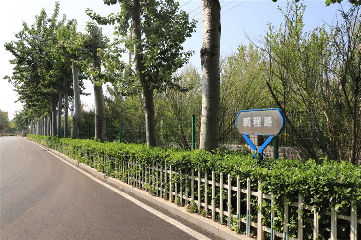 鹏程路,位于教学楼北,取“鹏程万里”之意,立于鹏程路上,即可一览教学楼全貌,教学楼内的同学们正在努力学习,等待实时机成熟,便一飞冲天。