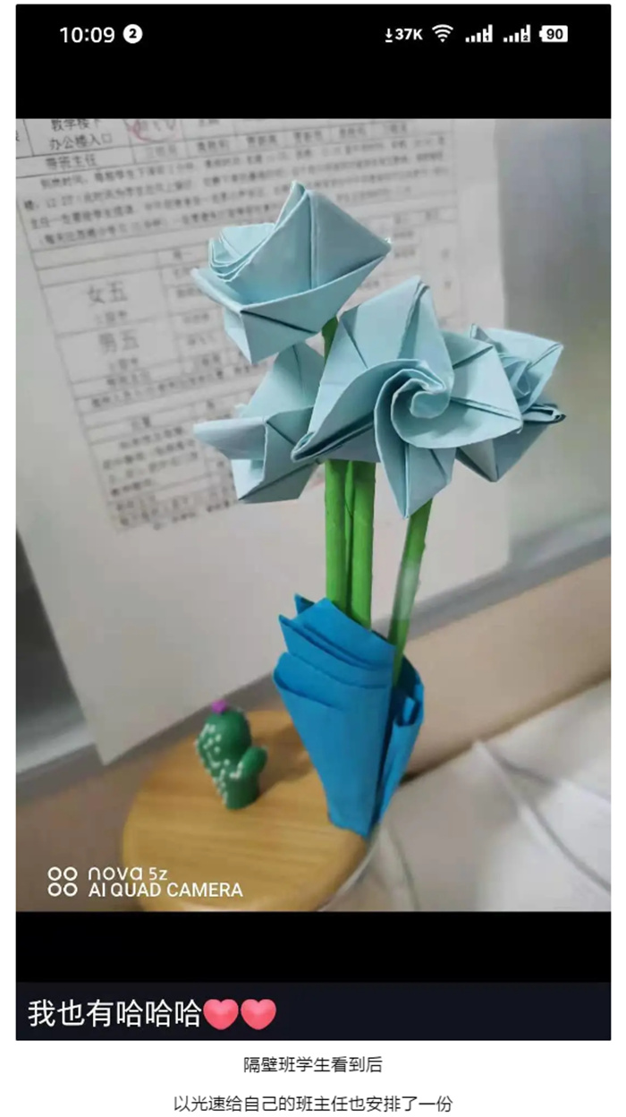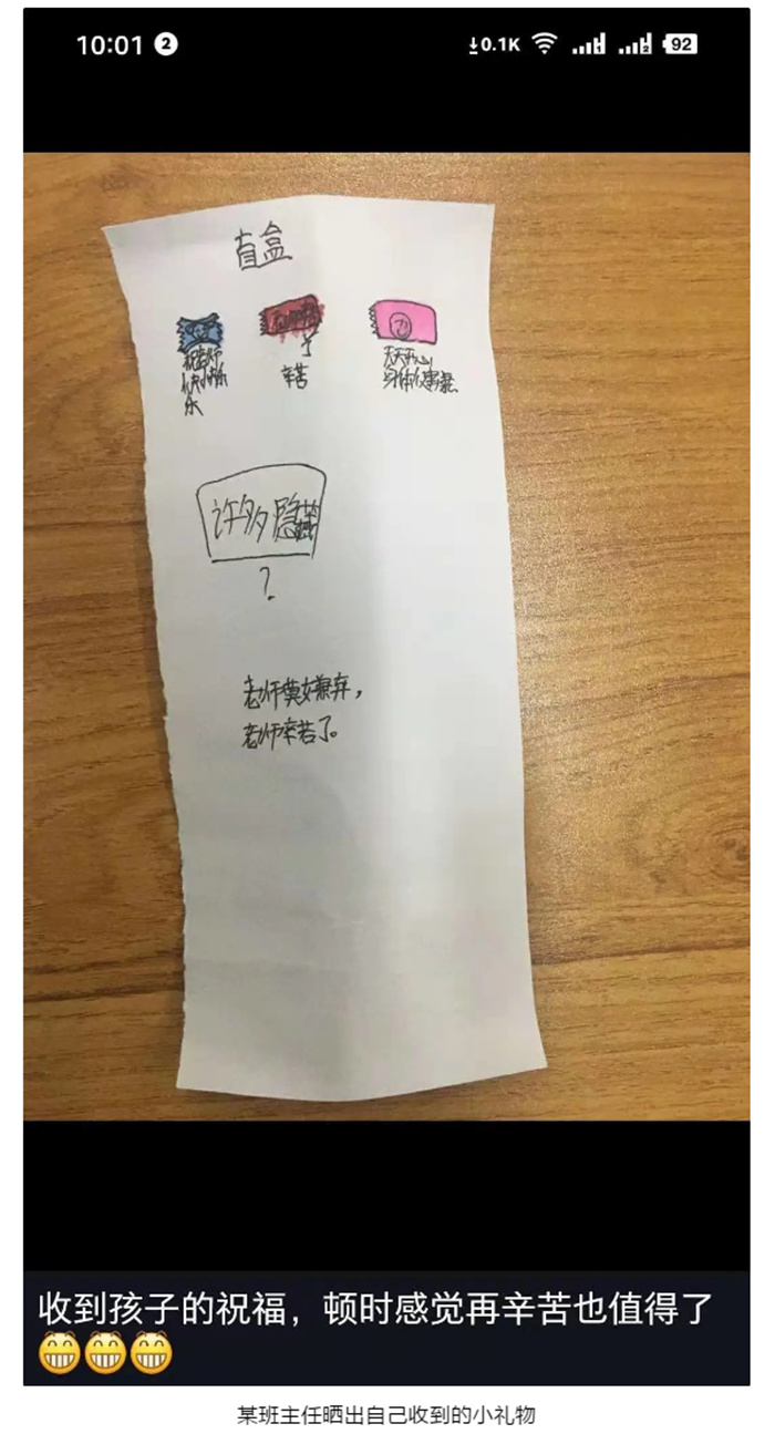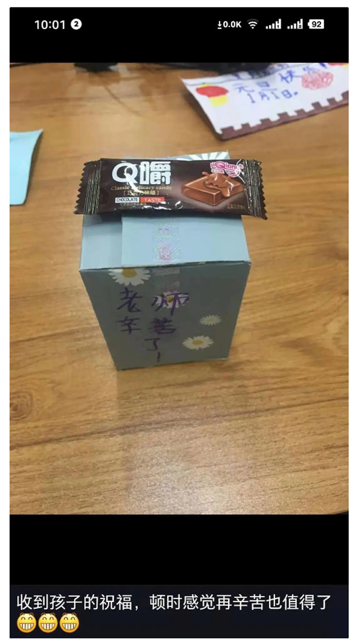 师生之间的友谊,往往体现在一些小细节上,班主任有时会收到同学们的小礼物,这时他们就会开开心心的把它晒到自己的朋友圈。