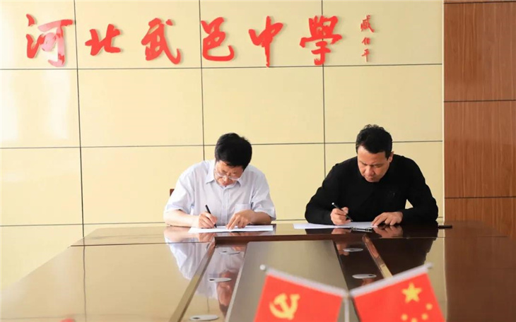 王瑞林书记和沈风雷副校长在武中会议室签订了战略合作意向书。王书记表示,武邑中学的办学成绩十分优秀,在近年来为河北农业大学输送了许多的优秀生源,希望在以后的日子里,能够与武邑中学达成更加深度的合作,同时也希望武邑中学的同学们能够积极报考河北农业大学。