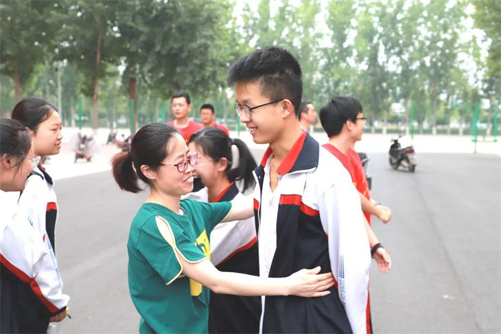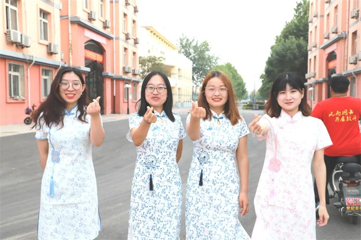 班主任老师身穿旗袍,寓意考生旗开得胜