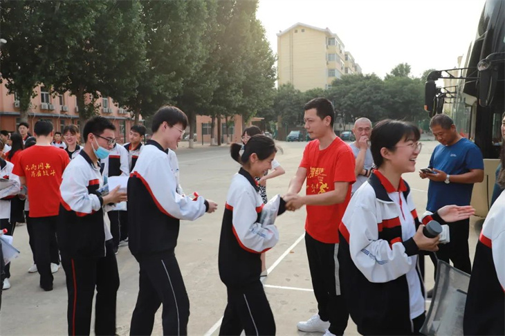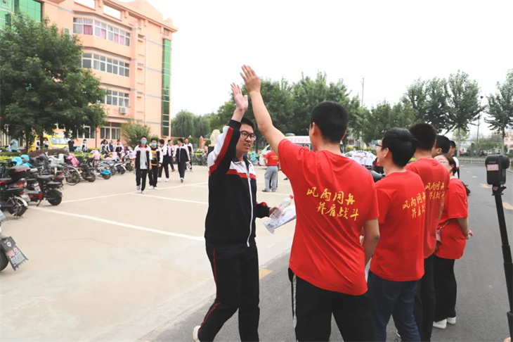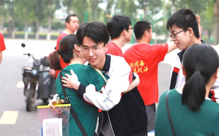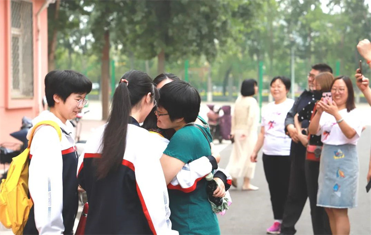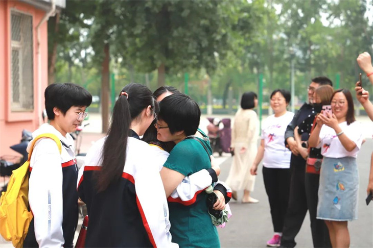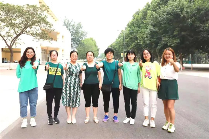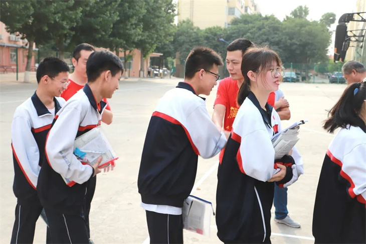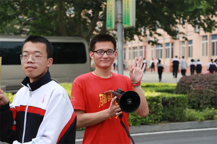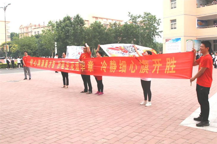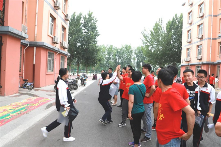 数学组老师穿着绿色短袖,寓意考生一路绿灯