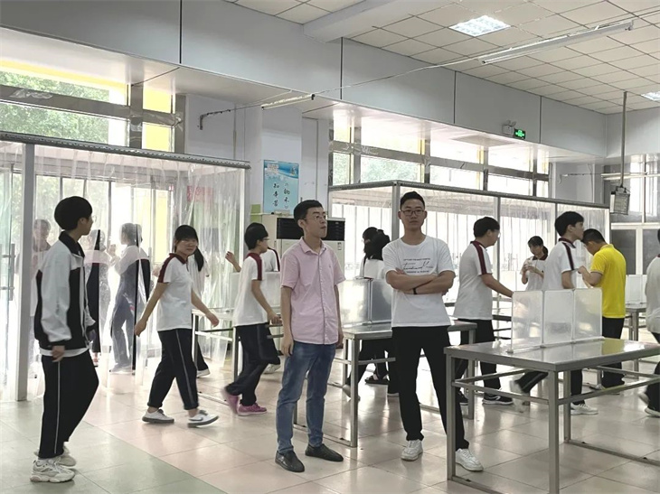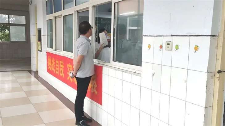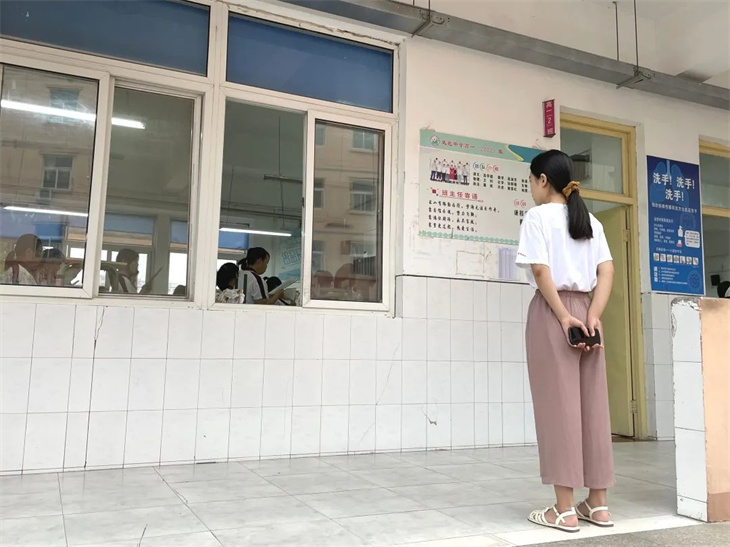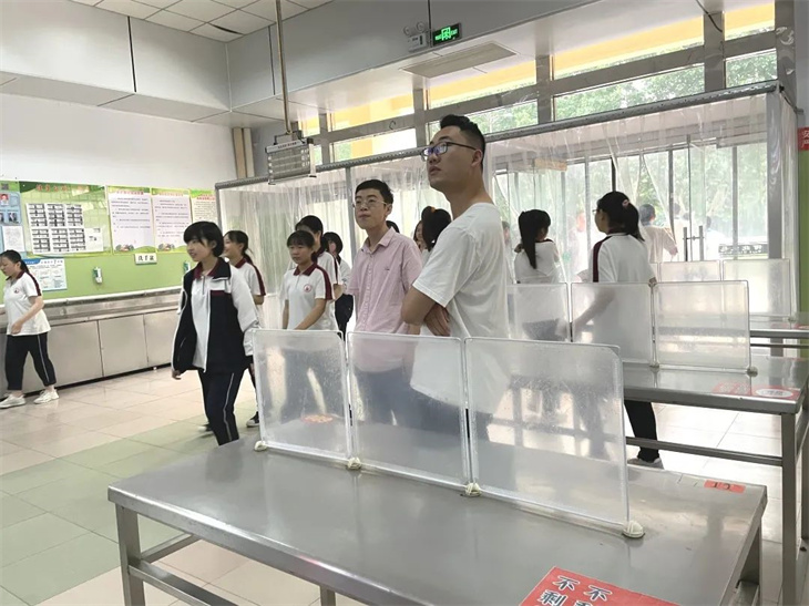 吃饭时间到了,班主任老师来到餐厅例行巡视。