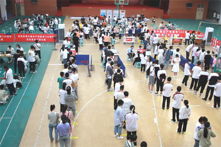 我校利用暑假时间组织高一高二的学生接种疫苗