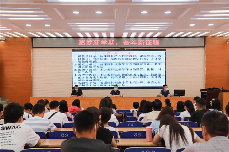级部主任马永达宣布了新学年的分工安排和教学计划,并为在座教师解读了教学常规操作规程。马主任强调,教育是一项神圣的事业,容不得一丝马虎,希望全体教师认真学习规程内容,并严格执行。