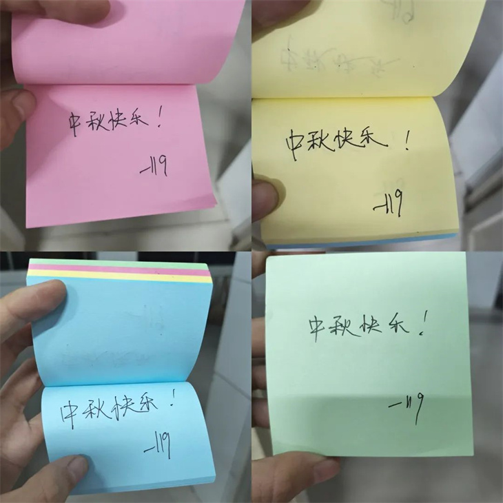 中秋节是一个寄托了中国人美好心愿的节日,班主任老师在平时的生活中如父母一般关爱着同学们,如今中秋佳节至,细心的班主任老师为学生送上节日的礼物,每一张小纸条的祝福语都是老师亲手写上去的,饱含着老师对学生的殷切期望。相信同学们看到这些发自内心的祝福时,心里的感觉一定比口中的月饼更加甜蜜吧。