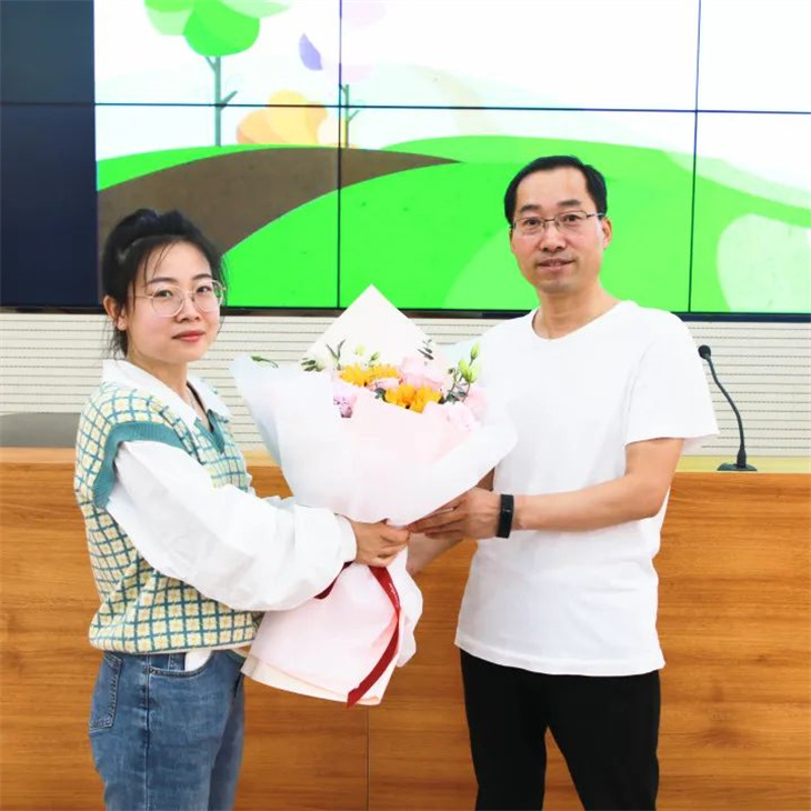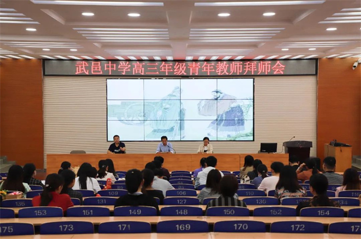 青年教师代表国倩影老师发言。她真诚表达重回武中大家庭的兴奋之感以及对母校和师傅的感激,表示以后要积极回报母校,始终以一名人民教师的标准严格要求自己,以饱满的热情为学生传道、授业、解惑,履行自己身上的光辉使命。