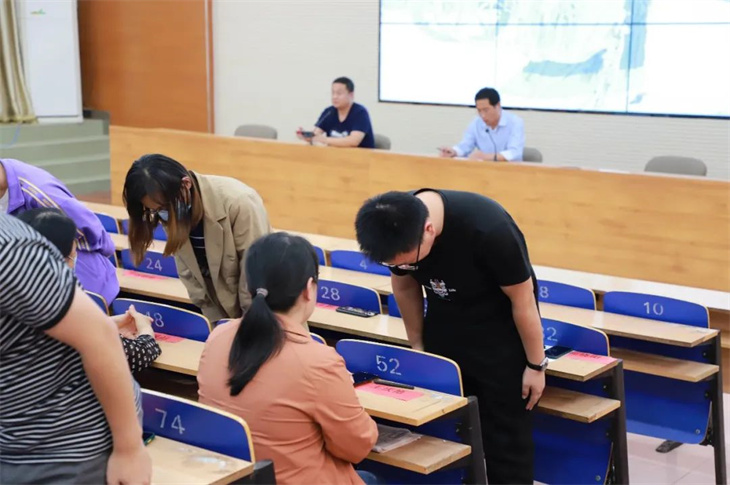 在高华超主任宣布行拜师礼后,我校青年教师与各自的指导教师签订拜师协议,并向自己今后的师傅深深三鞠躬,为师傅奉茶,与师傅握手,希望今后师傅在教学上严格要求自己,倾囊相授。浓浓的仪式感孕育着教师匠心的传承。