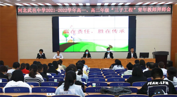 会议首先由闫鹏主任宣读了《武邑中学2020——2021学年拜师结对协议书》。由各位青年教师向指导教师行拜师礼,表示对师傅的认可和感谢,也表明自己虚心向师傅学习的决心和进步的信心。