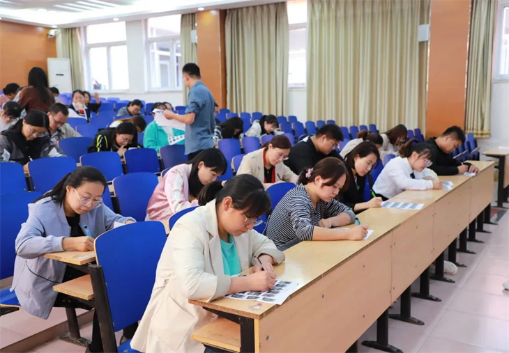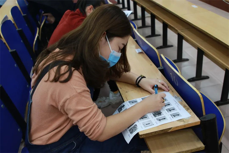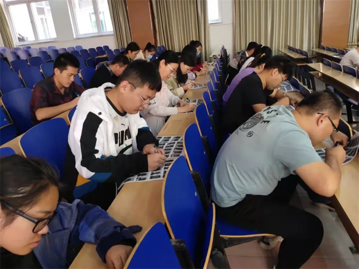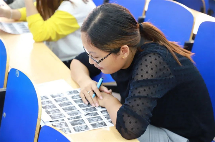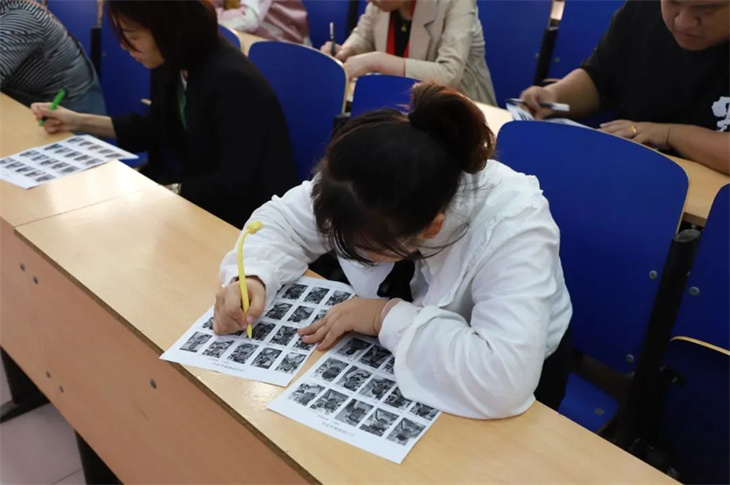 下午,老师们早早的在座位上等候活动的开始,这场活动由高一年级主任邱雪,级部主任徐亚男、马永达主持,全体高一年级教师参加了此次活动,老师们在拿到印满学生照片的“试卷”后,马上迅速拿起笔在照片下面写上学生的名字,一刻也不敢懈怠,比赛规则是在规定时间内看哪位教师写的对、写的多。
