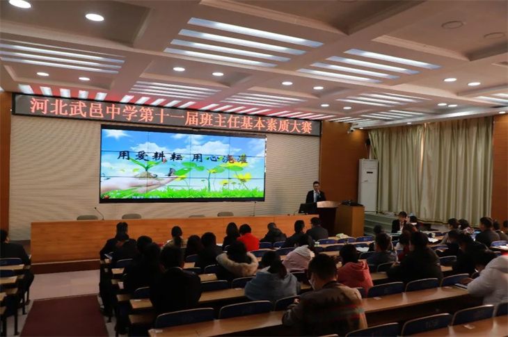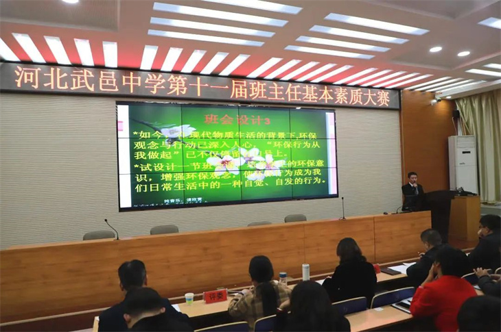 本次比赛共有教育故事演讲、班会设计、情景答辩和才艺展示四个部分,由我校常年担任班主任的资深教师担任评委,副校长赵晓艳、政教处主任张双柱以及各年级主任出席本次活动。