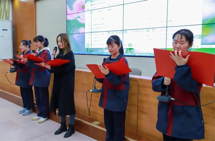 最后的环节是班主任们的才艺表演。我们看到的班主任们平时平时工作严肃认真,努力负责,但是他们现在都拿出了自己的绝活,唱歌、诗朗诵、舞蹈、乐器演奏……有的甚至邀请来了本班的同学来助阵,真可谓精彩纷呈。