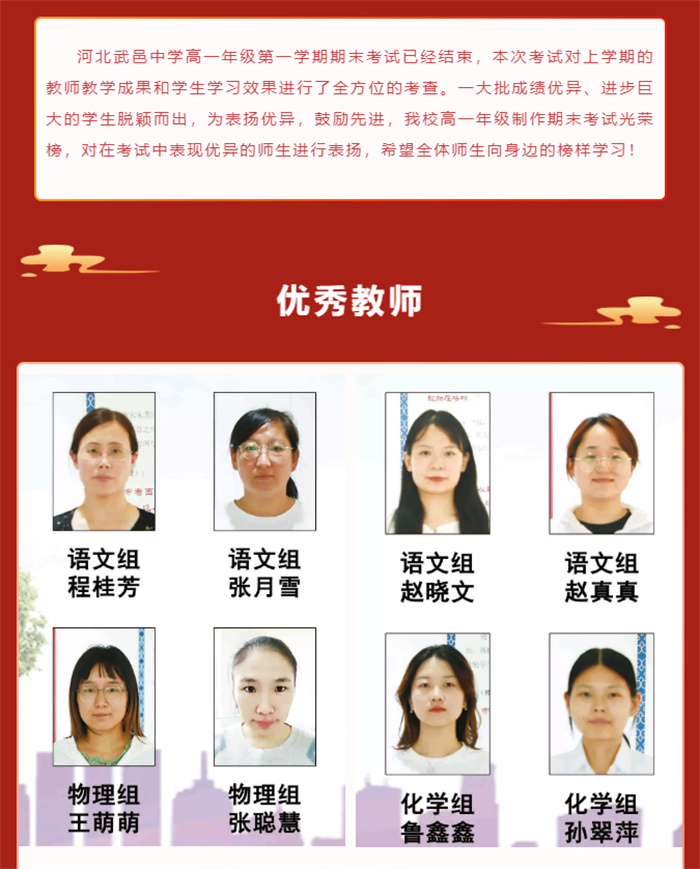 向榜样学习 跟优秀看齐——2021-2022学年武中高一年级第一学期期末考试