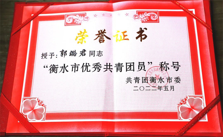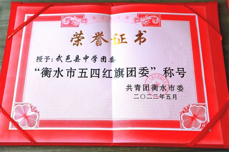 今年,我校荣获“衡水市五四红旗团委”称号。我校韩兵和郭璐君两位教师荣获“衡水市优秀共青团员”称号。