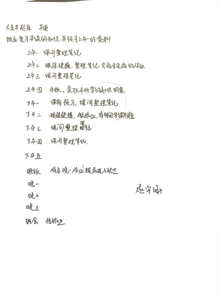 5、合理安排时间。高质量的学习离不开有效的时间规划和管理。学会利用零散时间背诵已学知识点,要把学过的知识掌握得滚瓜烂熟,这才能真正把化学学好。每天早晨第一件事,罗列“待完成”事项清单,每天晚上结束时整理清单,完成的划掉,检视自己的时间管理状况,及时调整;不断进步,直到形成习惯。