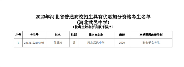武邑中学高校专项公示名单