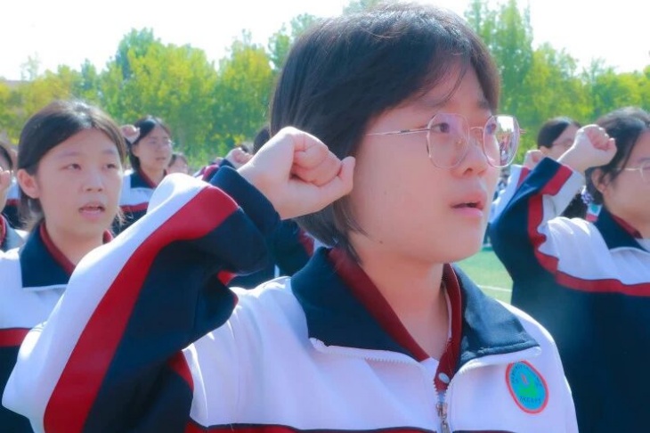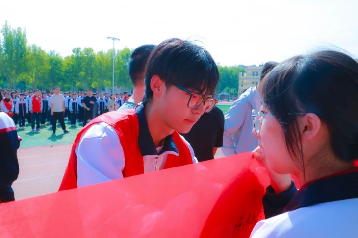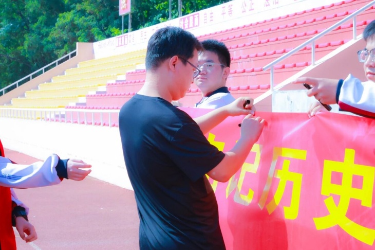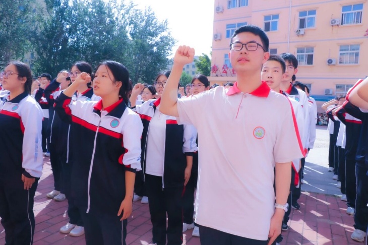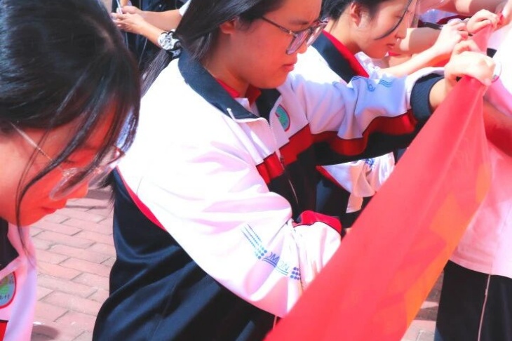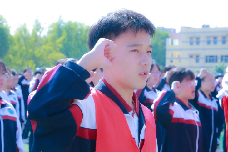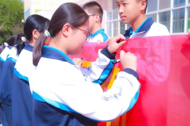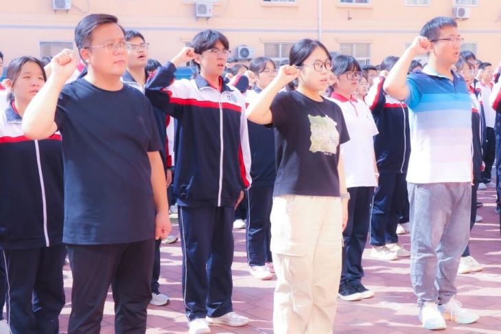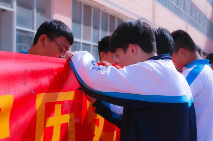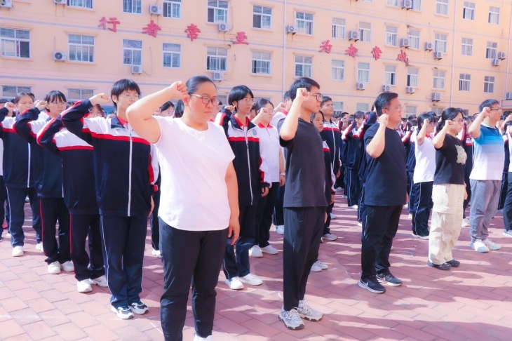 学生们身着整齐的校服,肃然列队,庄严宣读誓词。他们誓言为国家的独立和民族的尊严不懈奋斗,决不向侵略者低头。这一宣誓仪式,不仅象征着武中学生的团结与坚定,更彰显了他们对祖国和民族的无限热爱与忠诚。当师生们肃穆地站在条幅前,郑重地签下自己的名字时,整个会场都沉浸在一种庄严肃穆的氛围中。家仇国恨,深埋心底,无法言表,但那份坚定却写在了每一个人的脸上。今日,他们努力学习;未来,他们必将矢志报国,吾辈自强!