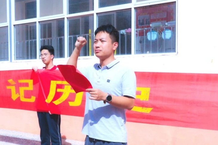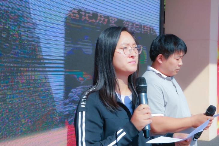 教师代表吕朝阳老师进行演讲,向大家讲述了“九一八事变”的历史,号召全体同学竭尽全力,发奋读书,学会做人,立志成才,用实际行动把祖国建设得更加繁荣富强,让历史的耻辱永不重演。吕朝阳老师的演讲引发了全体同学的思考和共鸣,激发了广大师生们的爱国热情。