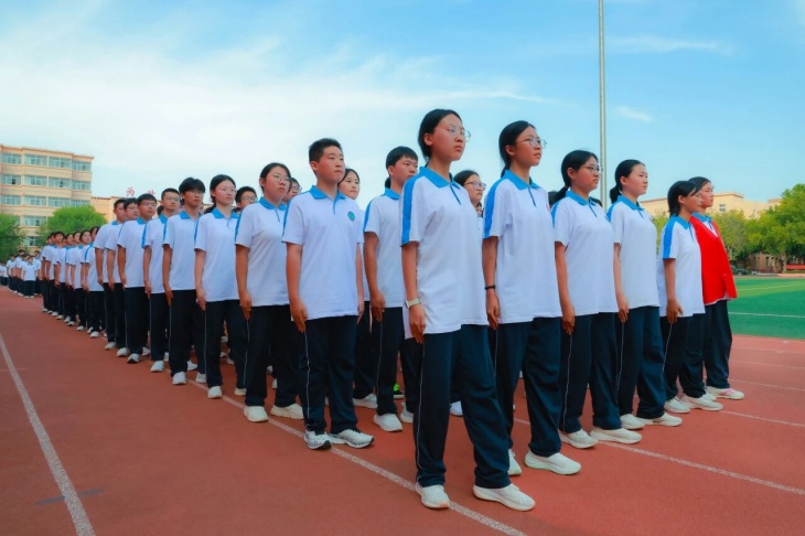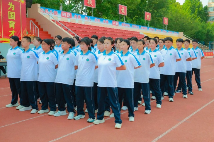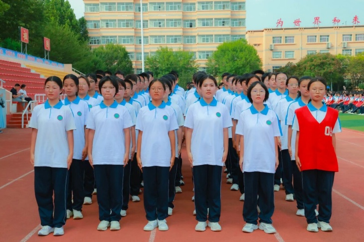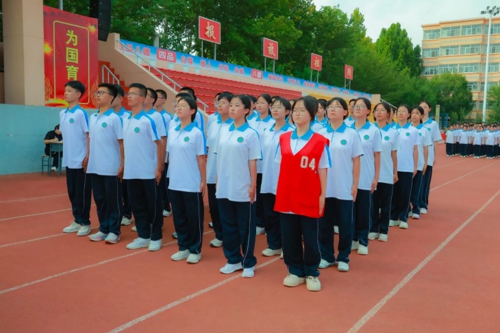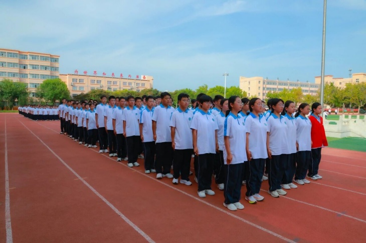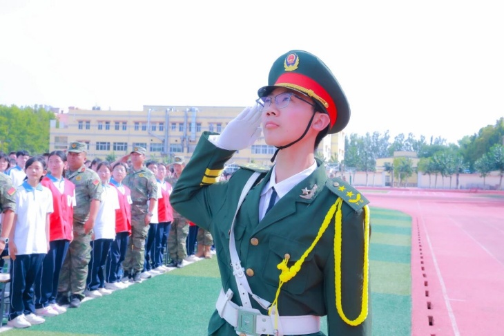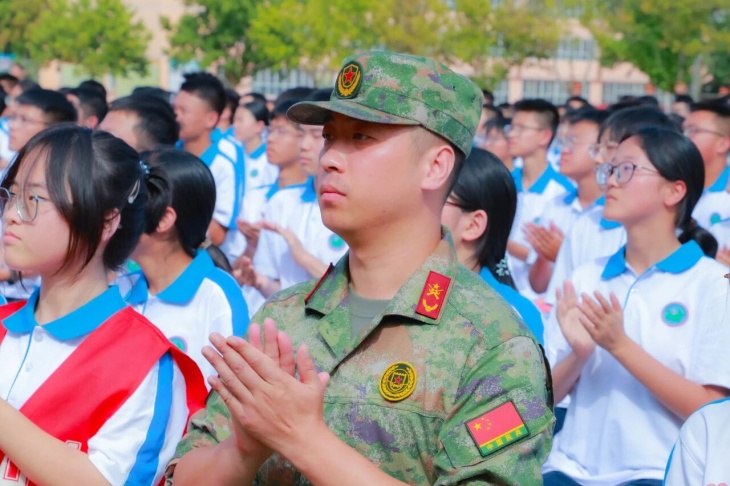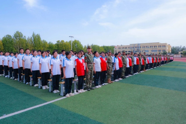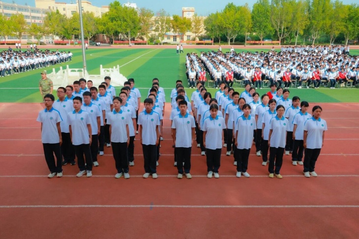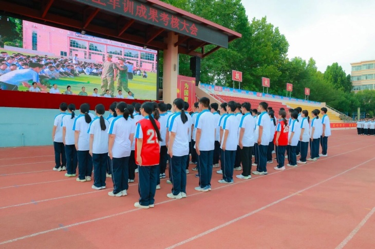 淬火成钢展英姿,青春砺剑启新程。在为期七天的军事训练中,高一新生以汗水浇灌成长,用意志对抗骄阳,以昂扬的斗志和整齐的步伐,成功迈出了高中生涯坚实的第一步。为检验武中学子的军训成果,展现新生蓬勃的军训风采,并进一步激发同学们爱国爱党爱军的炽热情怀,9月7日下午,武邑中学2025级新生军训成果考核大会在操场举行。武邑县人民武装部部长韩重建,武邑中学党委副书记、副校长赵杰翔,武邑中学副校长赵晓艳、金耀辉、高智勇,安全处主任魏红胜,高一年级主任孙涛、贾新亮,以及全体高一师生参加了此次大会。